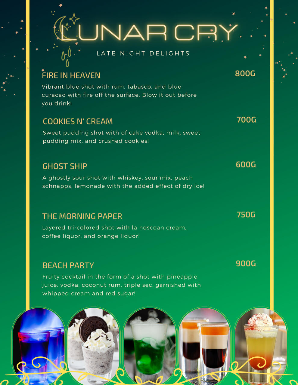 The Lunar Cry is an establishment and venue space that typically holds 'nightlife' events. Currently, it is one of NightRaid's associated venues and event spaces, and it is open to being used as a venue space for anyone who wishes to rent it! Visitors are welcome to relax in the lobby area at any time during the Cry's event hours.